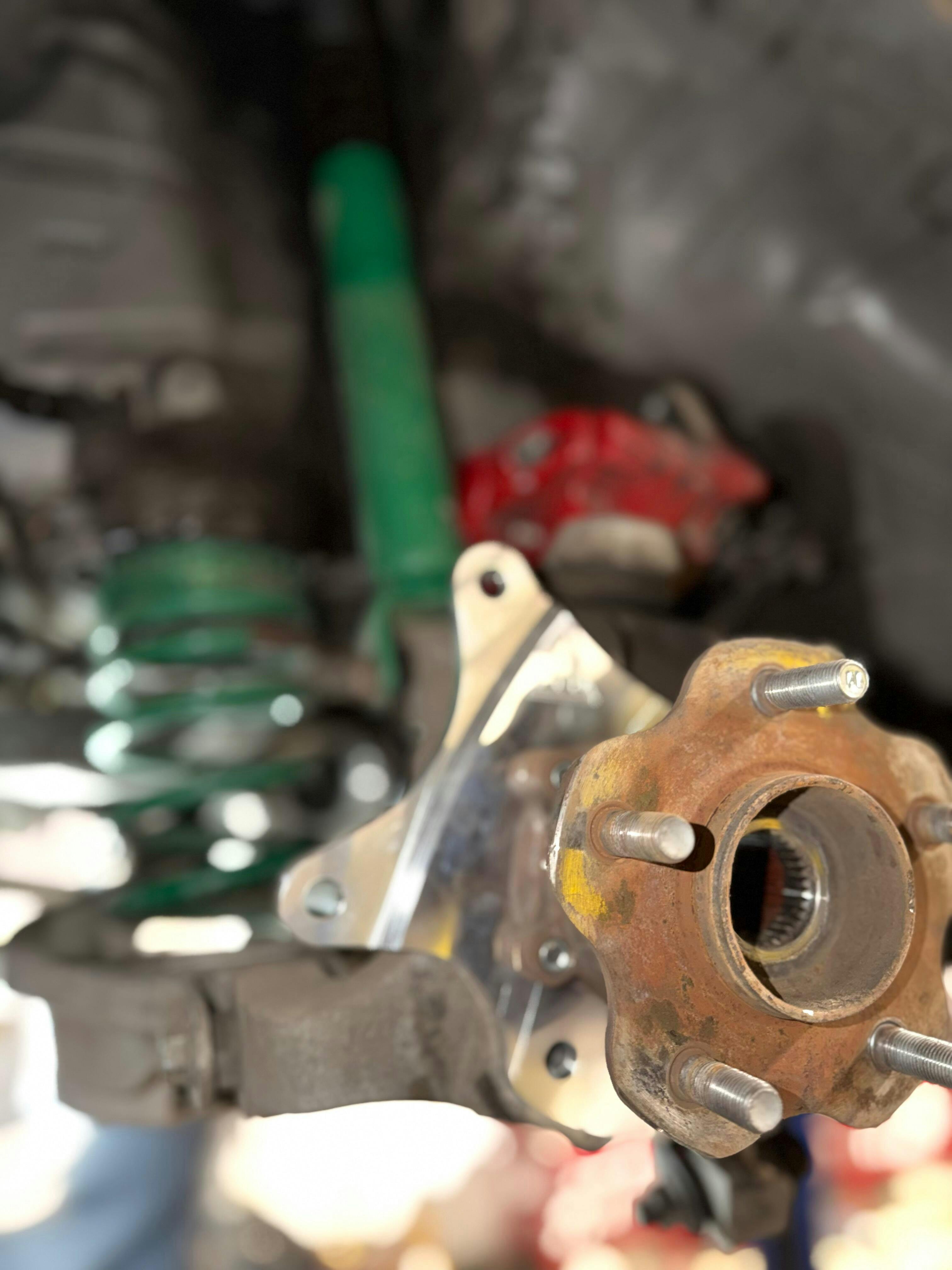Axle spacers are a good idea to use, especially if your car is very low. When you install this bracket, it sandwiches behind the hub which in turn stretches your axles out 7mm (the thickness of the bracket).