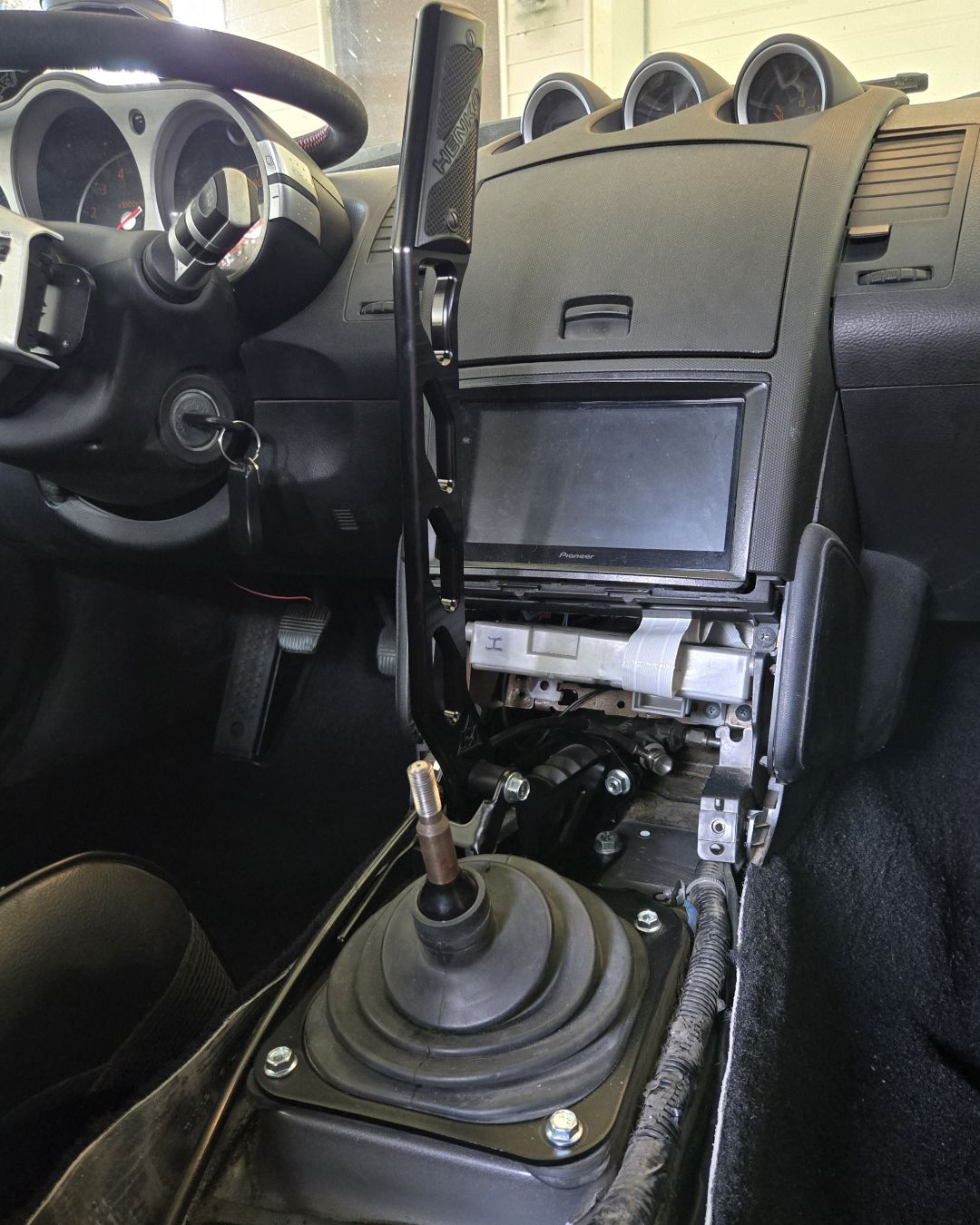 Unlike other hydros, ours is made with a one-piece chassis specific bracket, not a flimsy adapter plate. Made specifically for the 350z/G35, it simply bolts in using the OEM shift boot holes. An additional mounting hole is provided in the front for an ultra stiff, no flex mount. No grinding, welding, or fabrication needed.